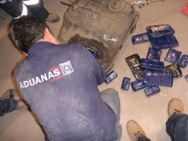 Tras la revisión con tecnología no invasiva los aduaneros establecieron que el vehículo tenía compartimientos con objetos ocultos, por lo cual se procedió al desarme de la carrocería y fue así como se detectaron un total de 151 paquetes de marihuana, con un peso final de 121 kilos con 0,5 gramos de la droga.