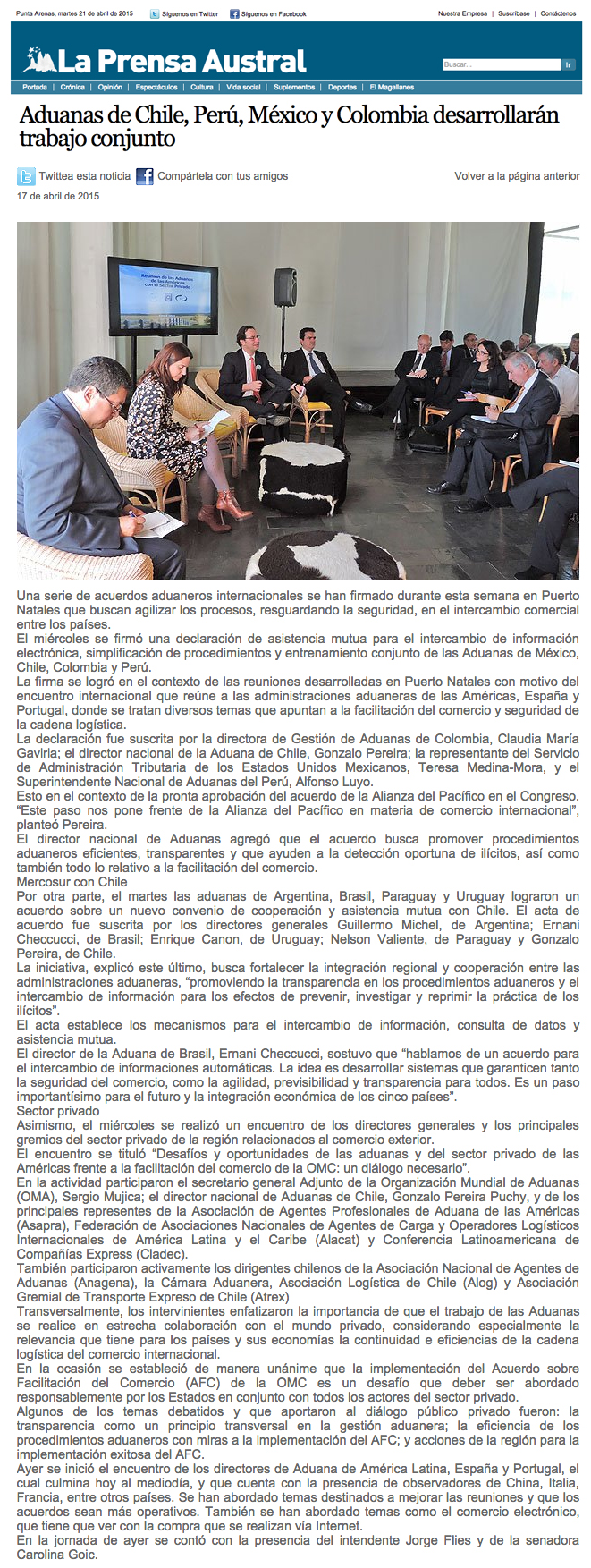 Notas de prensa publicadas en diversos medios de comunicación de Chile, América y Europa.