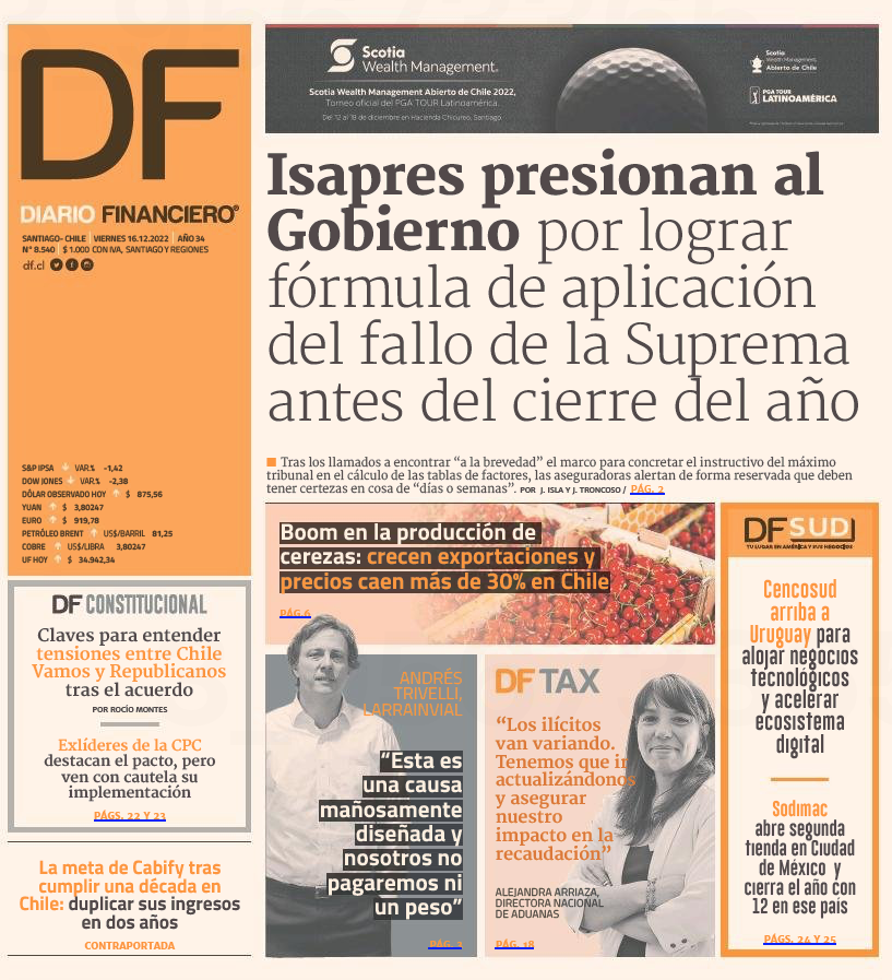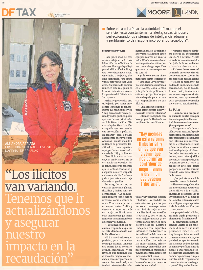 Estás en : Inicio / ADUANA INFORMA / ADUANA EN LA PRENSA Diario Financiero: Los ilícitos van variando. Tenemos que ir actualizandonos y asegurar nuestro impacto en la recaudación Viernes 16 de diciembre de 2022 Artículos relacionados Aduana detecta contrabando de dinero... 24 Horas: #Informe24 Detalles de la... CHV: Aduanas ya tiene test para... [Las Últimas Noticias]: Chile le... [TVN Red Valparaíso]: Ministro Marcel...