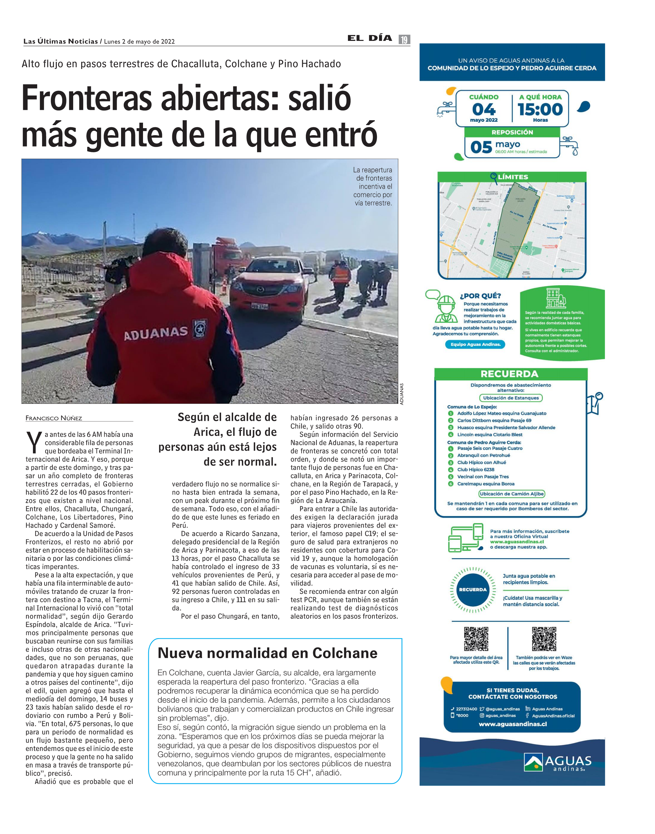 Estás en : Inicio / ADUANA INFORMA / ADUANA EN LA PRENSA Las Últimas Noticias: fronteras abiertas, salió más gente de la que entró Artículos relacionados Aduana detecta contrabando de dinero... 24 Horas: #Informe24 Detalles de la... CHV: Aduanas ya tiene test para... [Las Últimas Noticias]: Chile le... [TVN Red Valparaíso]: Ministro Marcel...