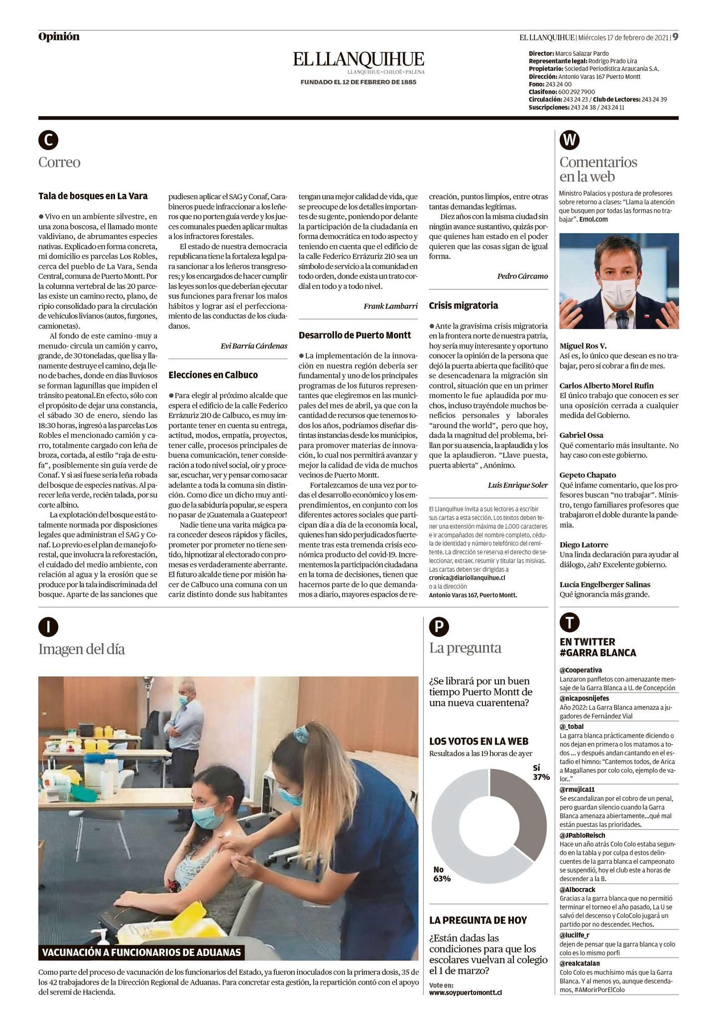 Estás en : Inicio / ADUANA INFORMA / ADUANA EN LA PRENSA El Llanquihue: Vacunación a funcionarios de Aduanas Artículos relacionados [RADIO COOPERATIVA] Se comenzará a... [diarioestrategia.cl] Plataformas que... MEGA: Cobrarán IVA por compras... CANAL 13: Entrevista a Alejandra... 24 HORAS: Compras internacionales...