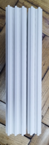 Las cinco muestras analizadas se presentan como trozos de madera, pintados de color blanco en sus caras (imagen N°1) y cantos (imagen N°2), con dimensiones de 18,5 cm de ancho, 30 cm de largo, 1,6 cm de espesor y terminaciones machihembrado para realizar uniones entre si (imagen N°3).
